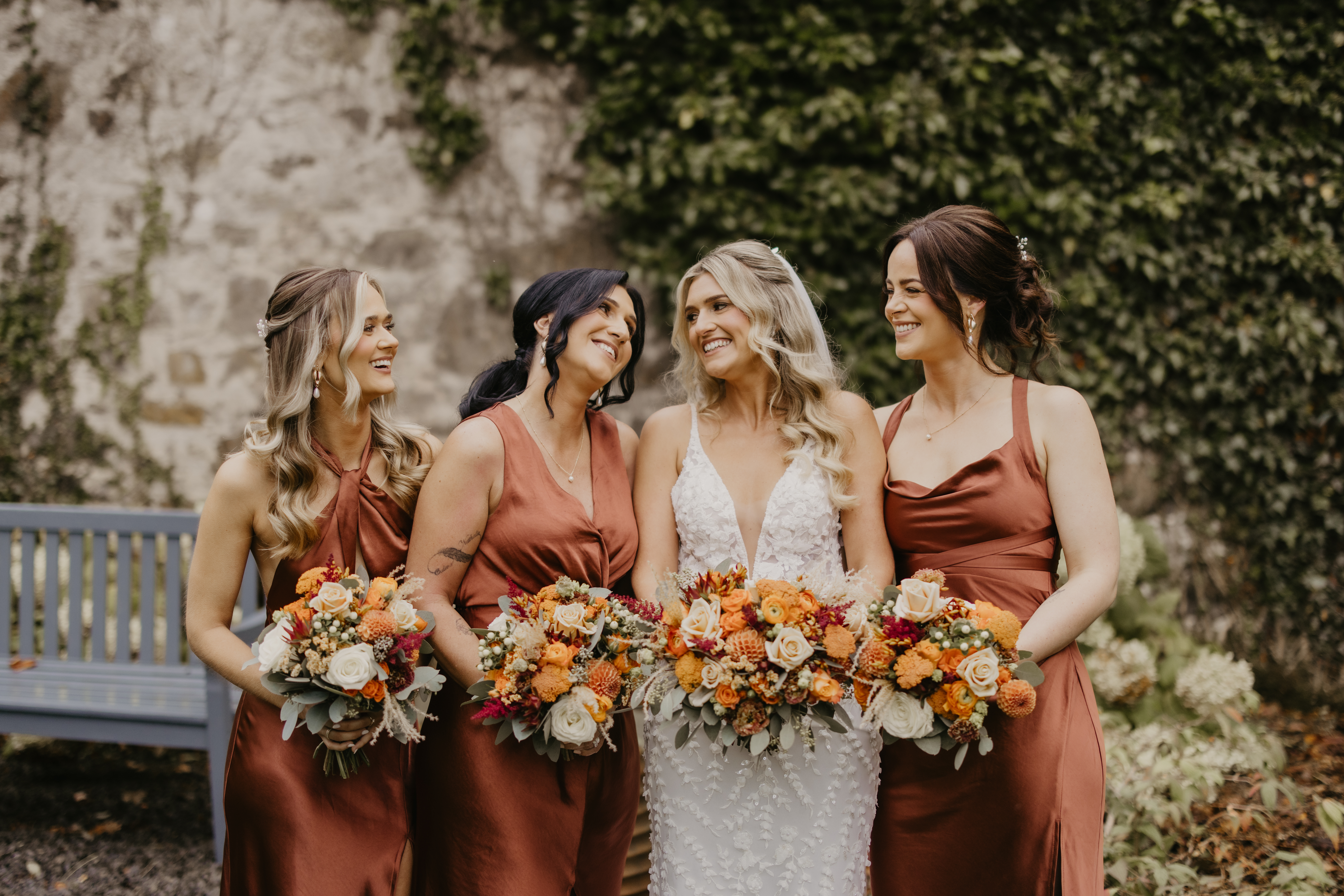 The age old question...personally I recommend that you just compliment each other. Theres no need for the blue jeans and white tee phase. Just consider your surroundings and time of the year and if you're really having trouble muted tones go with everything. Be comfortable with footwear depending on the terrain of the location chosen, feel free to bring blankets, jackets and I'll always have my brollys in the car (just incase).